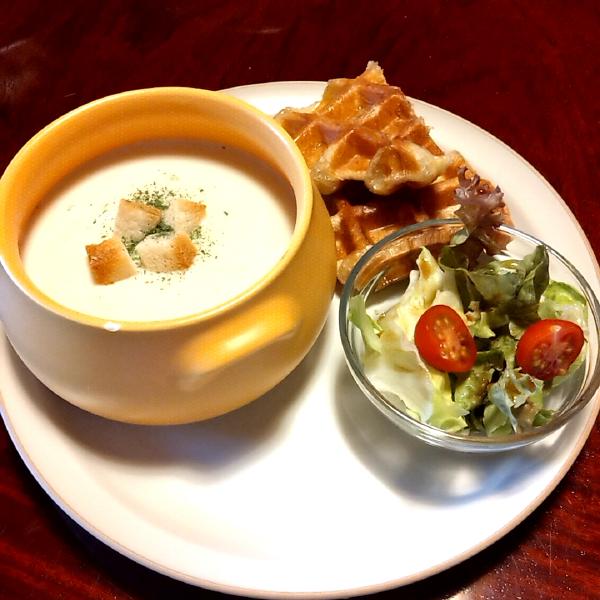 私&母:クラムチャウダー&クロッフル