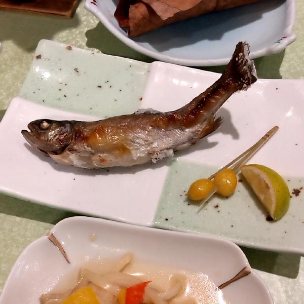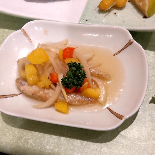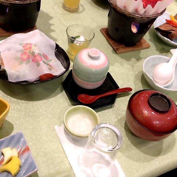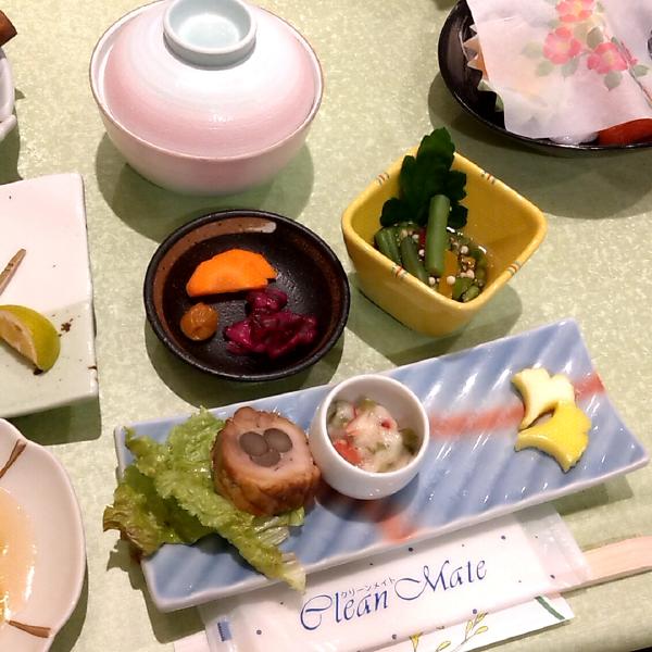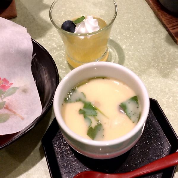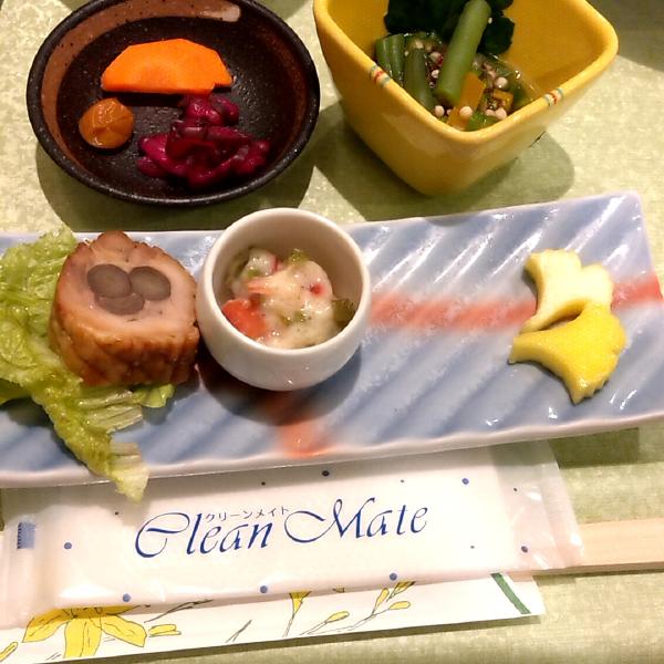 前菜(ほっき胡麻サラダ、いちょう淡雪、チキンロール)