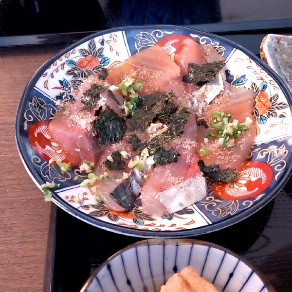 アジとマグロかな、ネギと胡麻、海苔が乗っていて