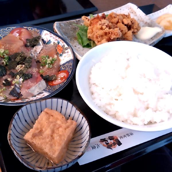 私:漬け刺し・唐揚げ定食