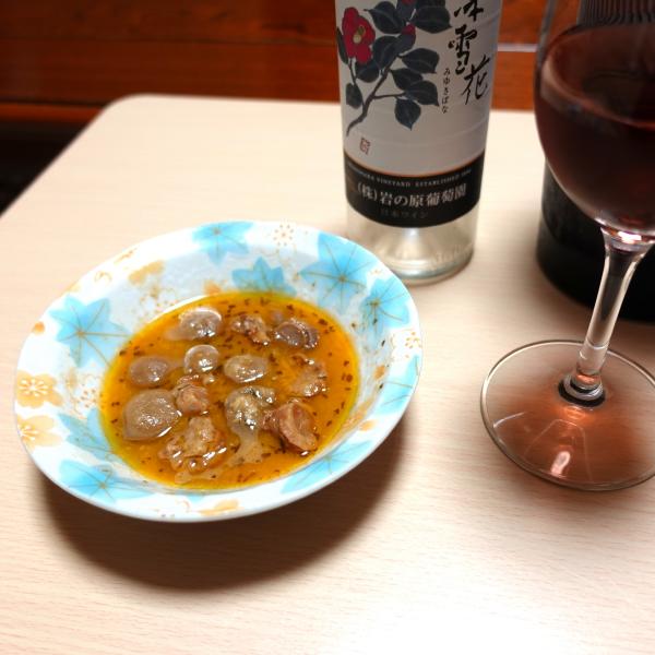 アヒージョの塩気が強くて、ロゼだと合わない感じ