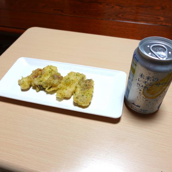 未来のレモンサワーとスルメ天ぷらですが、相性は抜群♪
