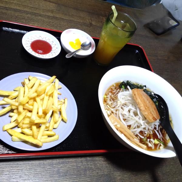 とにかくポテトフライだけ食べようとするので、ラーメンを