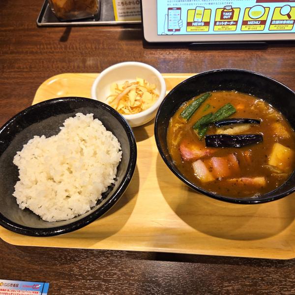 春を感じさせるカレーって事ですか、キャベツに筍、菜の花等の春野菜が